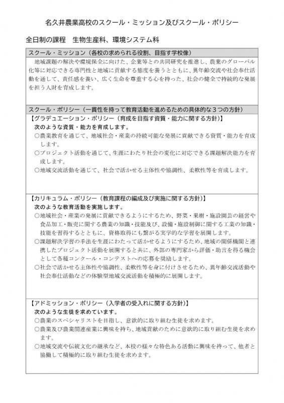 名久井農業高校のスクール・ミッション及びスクール・ポリシー